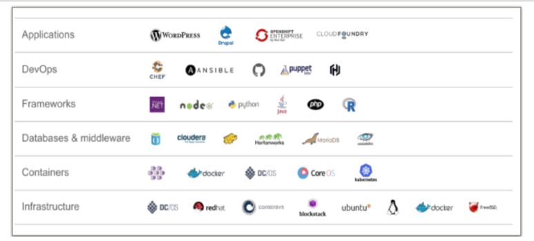 그림) 애플리케이션 스택과 가용한 오픈소스 솔루션
