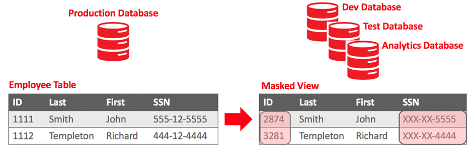 한편, 중요 데이터 보호는 개발 단계에서도 꼭 챙겨야 합니다. 차세대 프로젝트나 레거시 고도화 프로젝트를 진행하면 개발자를 대거 투입합니다. 이들 대부분은 외부 인력입니다. 이런 이유로 개발 과정에서 사용하는 데이터는 강력한 보안을 적용해야 합니다. 데이터 마스킹은 개발자와 테스터가 실제 데이터에 접근하는 것을 제한합니다. 이들은 개발 환경에서 실제 데이터 대신 마스킹된 데이터를 사용하여 개발과 테스트 작업을 합니다.