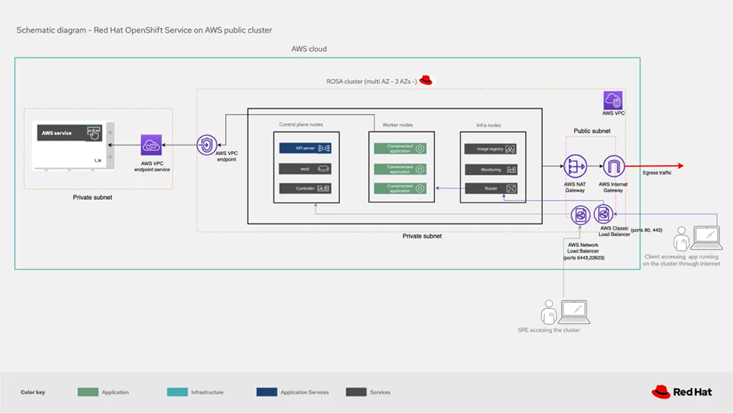 아울러 ROSA에서 운영되는 OpenShift 클러스터는 AWS의 다양한 클라우드 서비스와 바로 연동됩니다. 예를 들어 AWS의 컴퓨팅(EC2), 데이터베이스(RDS), 분석(Analytics), 기계 학습 서비스 등을 손쉽게 OpenShift 워크로드와 결합할 수 있어 애플리케이션 개발에 있어 AWS의 풍부한 기능들을 활용할 수 있습니다.