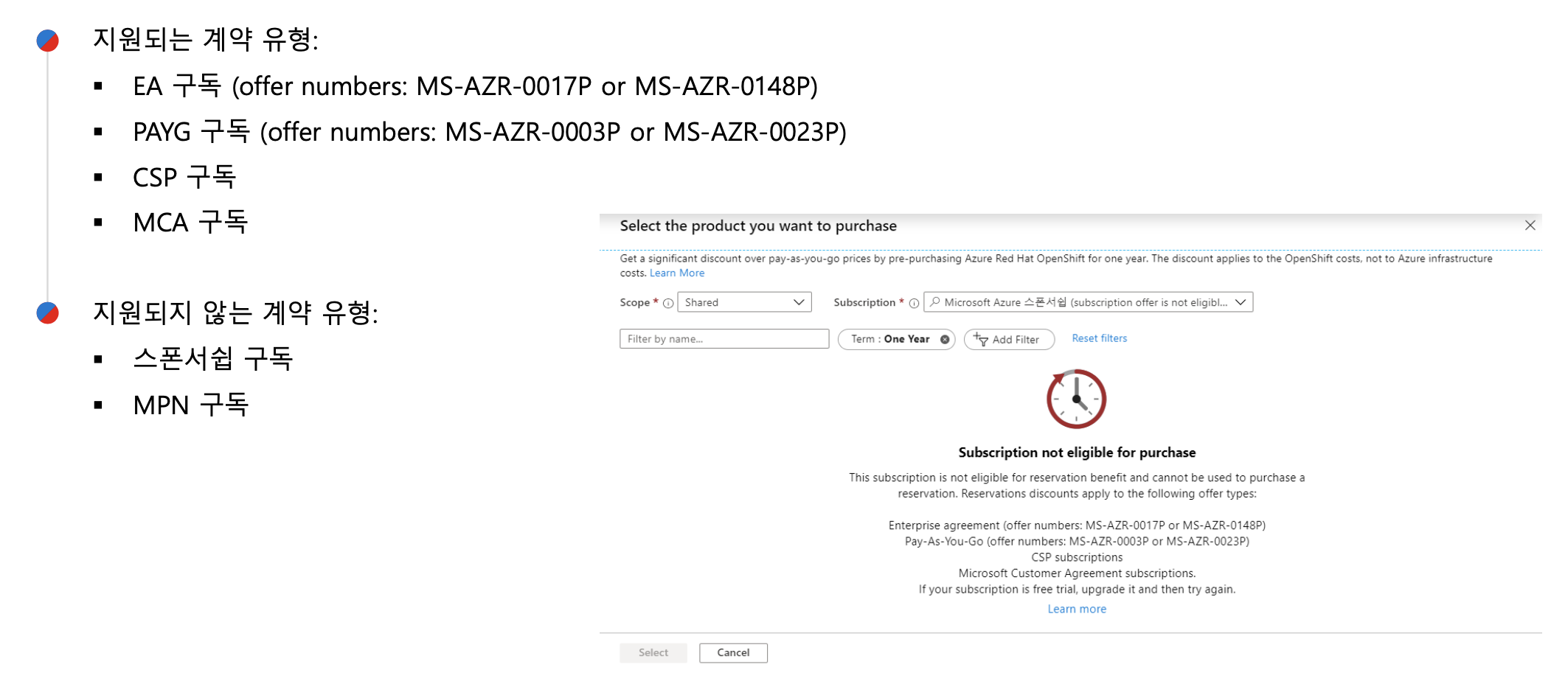 ARO 관련 비용 체계를 알아보겠습니다. ARO는 모든 노드에 대한 가상 머신 연산 비용이 발생합니다. 별도의 레드햇 엔터프라이즈 리눅스 운영체제 라이선스 비용은 발생하지 않습니다. 애플리케이션 노드의 경우 사용한 만큼 지불하는(pay on-demand) 방식으로 Red Hat OpenShift 라이선스 비용이 부과됩니다. ARO를 가장 경제적으로 이용하는 방법은 1년 또는 3년 단위로 Reserved Instance를 구독하는 것입니다. 이를 선택하면 가상 머신 연산 비용을 대략 40~60% 줄일 수 있습니다.
