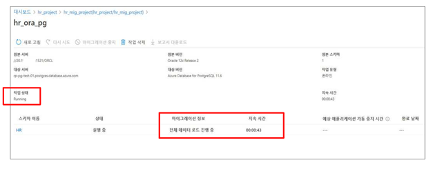 Azure Database Migration Service 인스턴스는 매우 직관적인 환경을 제공합니다. 마이그레이션 서비스, 프로젝트, 잡 생성 과정을 거친 다음 이관을 시작합니다. 작업자는 대시보드를 통해 데이터 로드 과정을 모니터링할 수 있습니다.