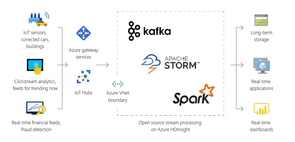 말 나온 김에 애저 환경에서 스파크를 이용한 스트리밍 분석 시나리오 몇 가지 살펴보겠습니다. 마이크로소프트는 데이터 과학자, 엔지니어, 개발자를 위한 노트북인 애저 데이터브릭스(Azure Databricks)라는 서비스를 제공합니다. 이 노트북을 쓰면 클릭 한 번으로 새로운 스파크 환경을 구성해 원하는 프로젝트를 시작할 수 있습니다. 스파크 스트리밍을 이용해 어떤 프로젝트를 시도해 볼 수 있을까요? 대표적인 예, 거의 대표 시나리오로 세미나에 자주 등장하는 주제가 있죠. 네, IoT 분석과 웹 사이트 클릭 스트림 분석입니다.